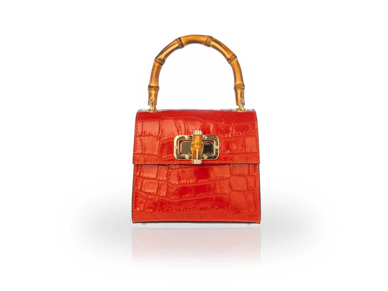 [Made in ITALY]Cowhide crocodile bamboo bag