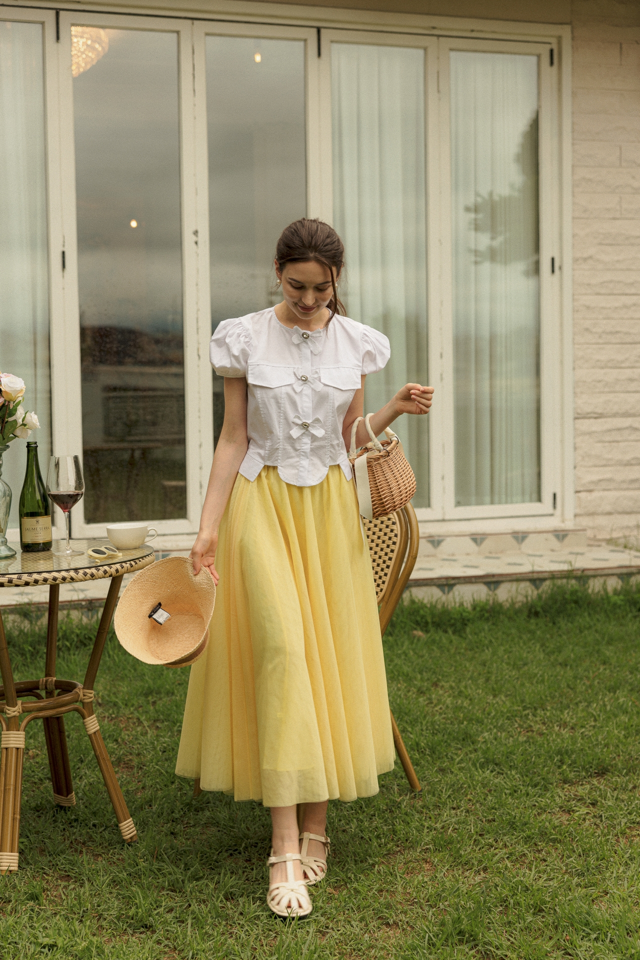 환경을 위해 재생 튤 소재로 제작한 라라트리의 투투 스커트를 만나보세요. 미디 길이의 플레어 실루엣으로 완성했으며, 전체적인 실루엣이 발레리나의 의상을 떠올리게 합니다. 신축성 있는 웨이스트를 구성하고 부드러운 실크 안감을 더해 완성했습니다.