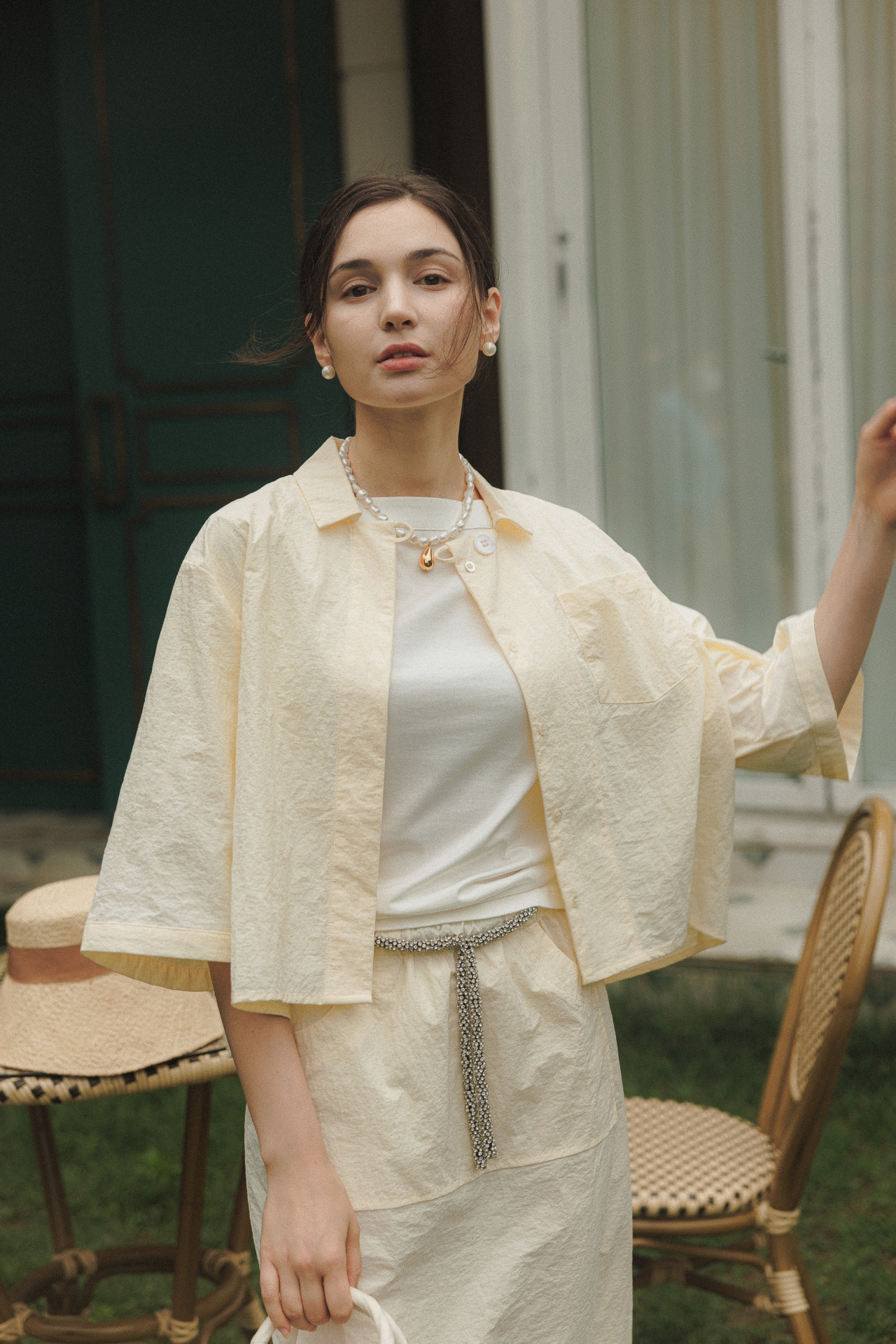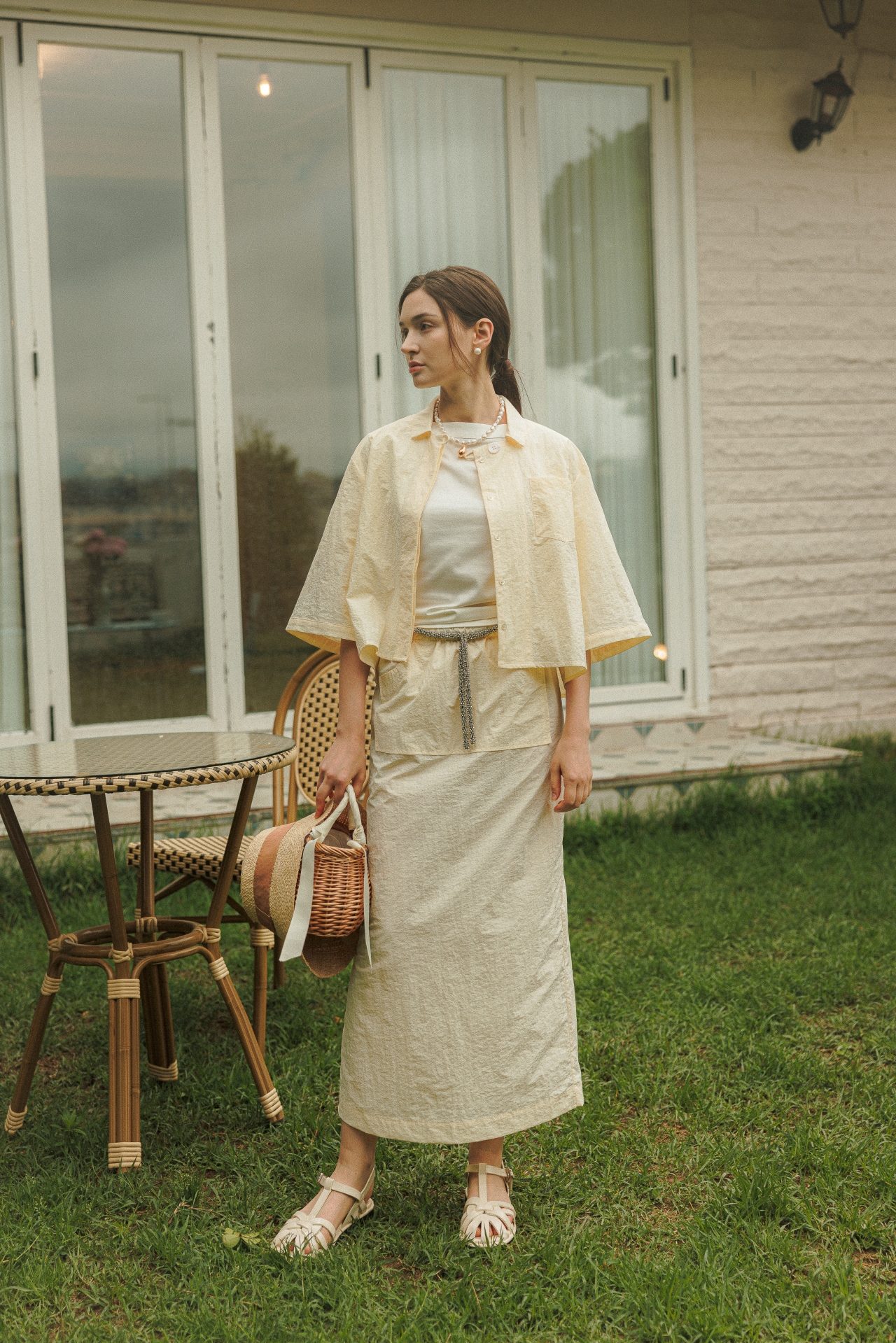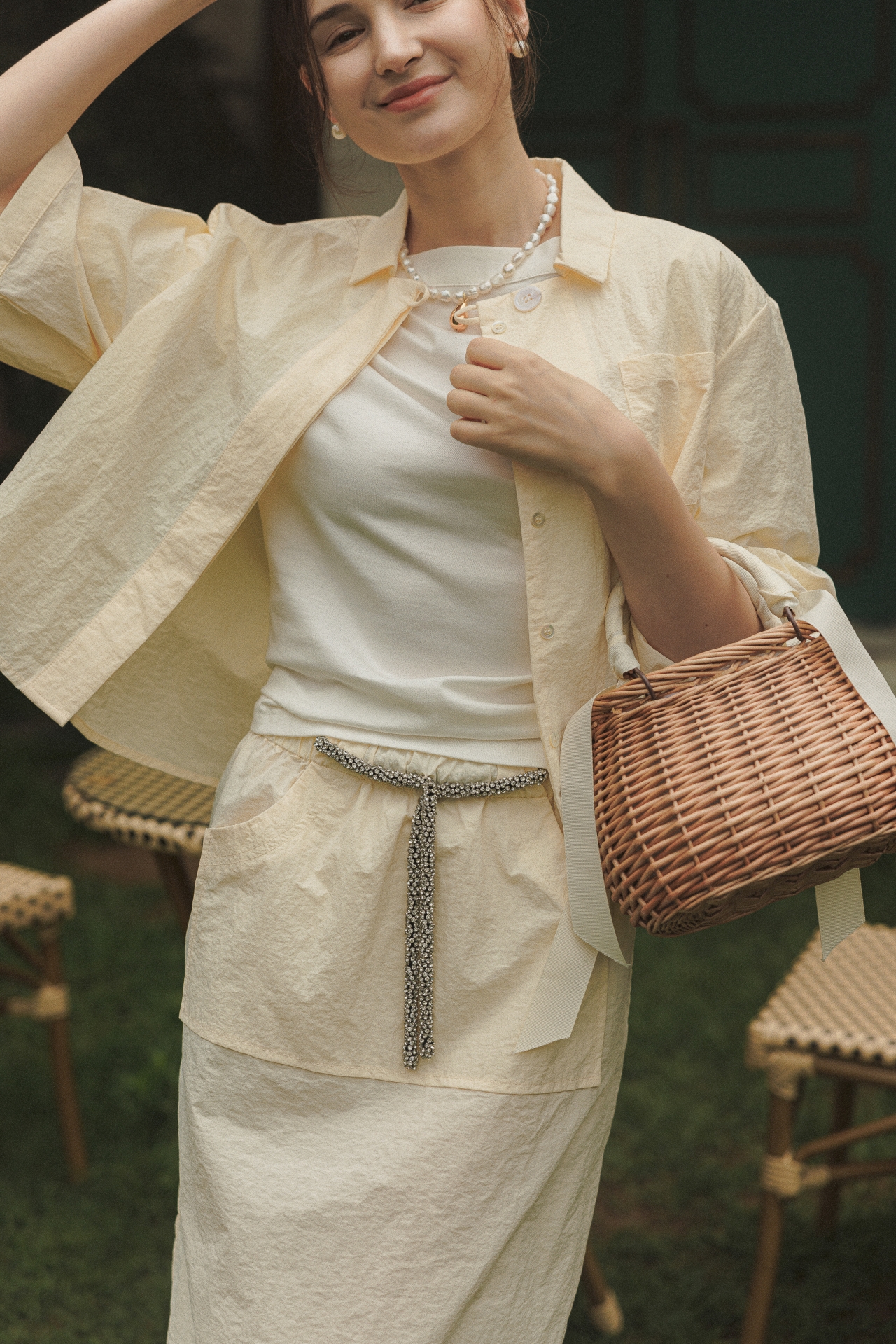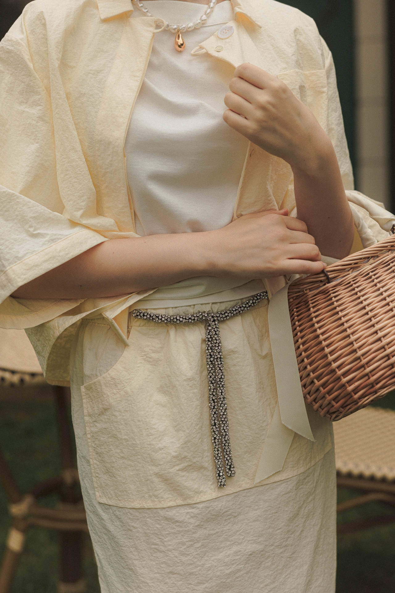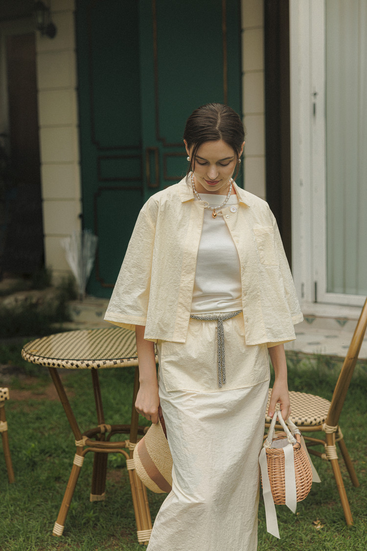 웨이스트의 매력적인 크리스털 장식이 돋보이는 라라트리의 맥시 스커트를 만나보세요. 발목에서 살짝 위까지 내려오는 길이감으로 모던한 여성스러움이 묻어나며, 웨이스트의 가느다란 크리스털 장식이 포인트로 탑을 턱인해서 연출하기에도 좋습니다. 동일 색상의 보일 코튼 크롭 셔츠를 매치해 모던하면서 여성스러운 룩을 연출해보세요.