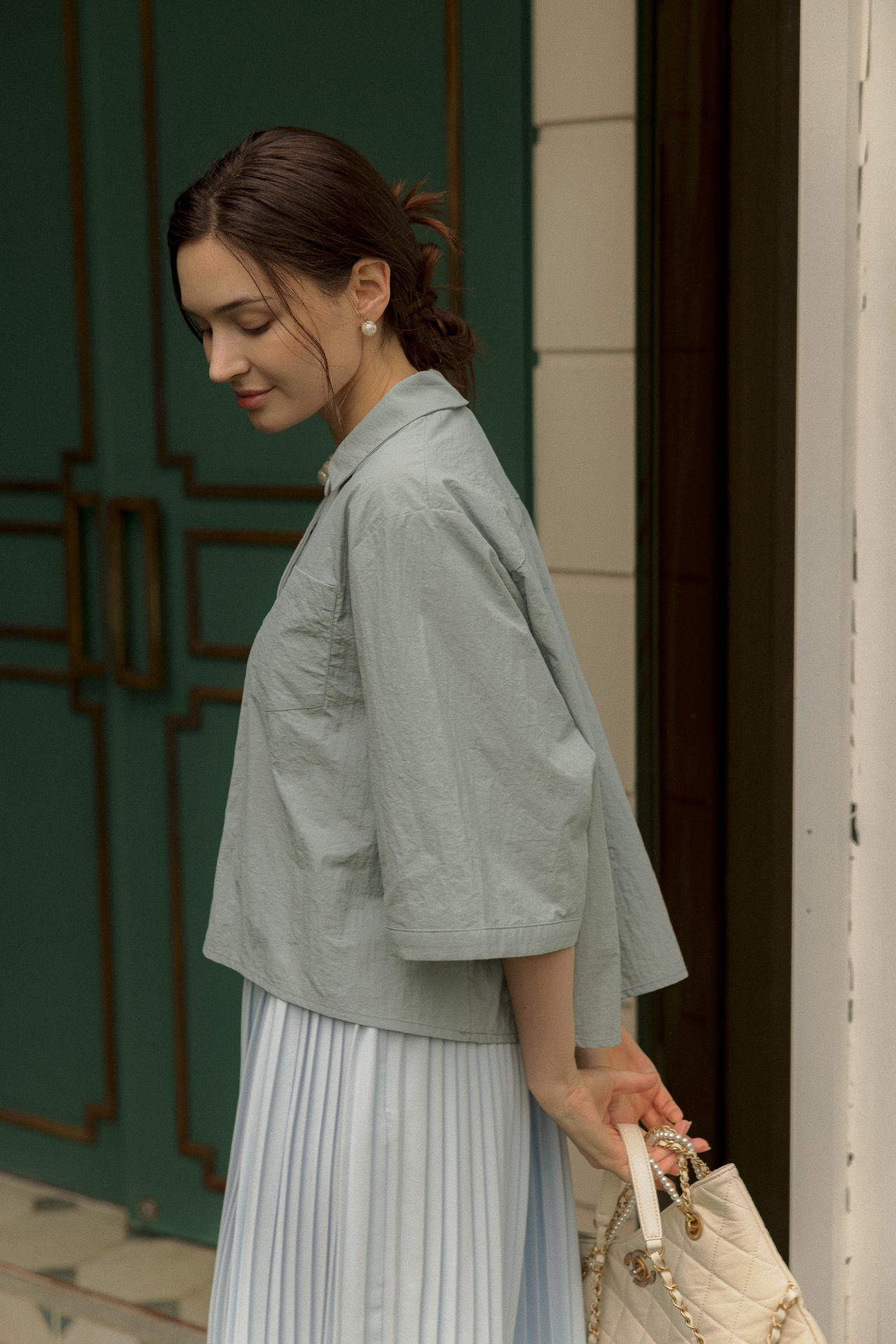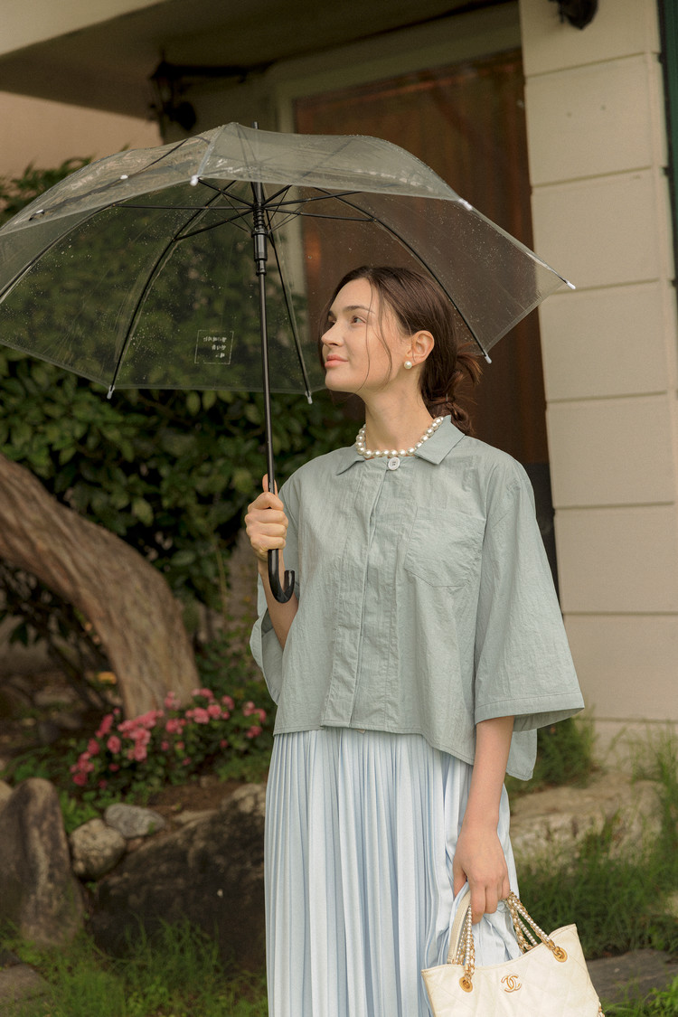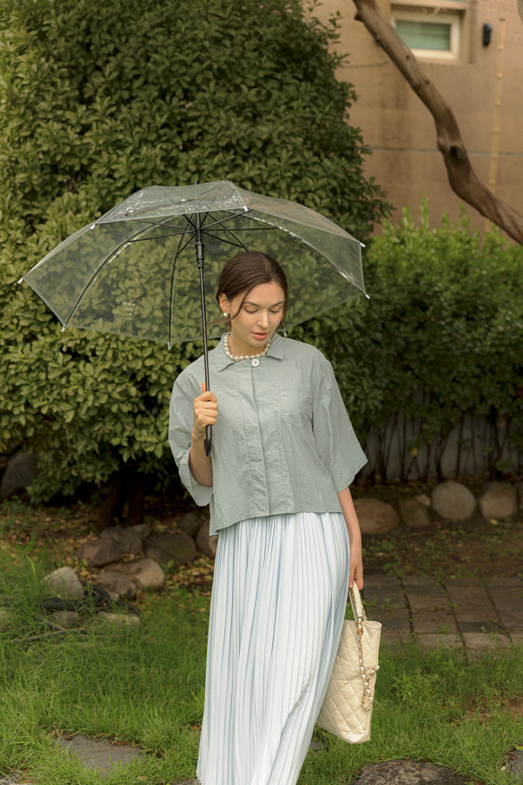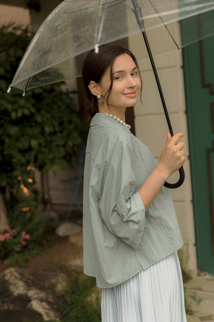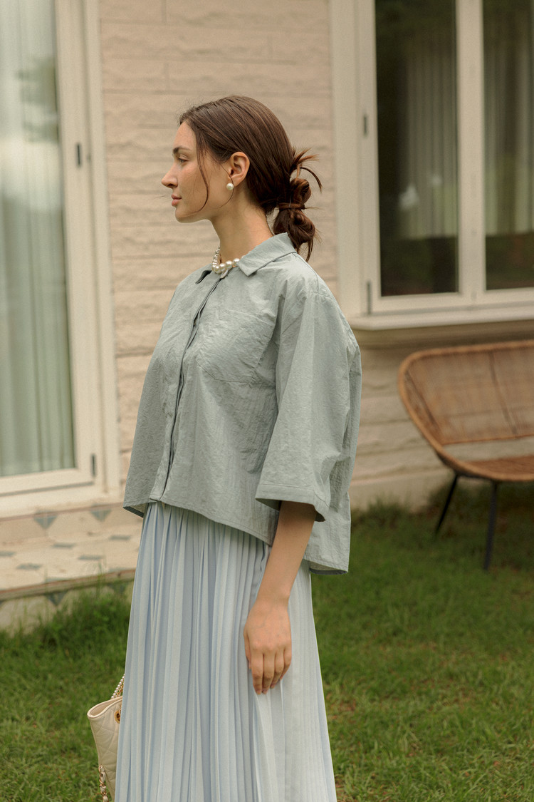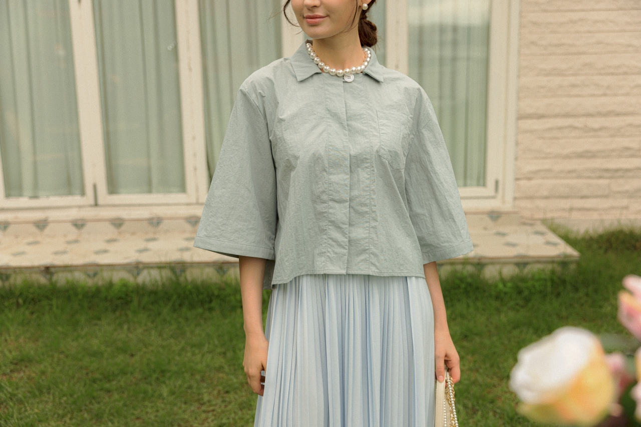 라라트리가 선보이는 보일 코튼 크롭 셔츠를 눈여겨보세요. 바스락 거리는 코튼 소재를 바탕으로 트라이앵글 패널을 구성하고 가슴에 패치 포켓을 더해 완성했습니다. 크롭한 기장감으로 하이웨이스트 스타일의 하의와 매치할 때 턱인하지 않아도 단정한 느낌을 연출할 수 있으며, 적당히 여유감있으면서 바디를 편안하게 커버해주어 몸의 군살이나 약점을 보완해주는 효과가 있습니다. 동일 색상의 크리스털 맥시 스커트를 매치해 모던하면서 여성스러운 룩을 연출해보세요.