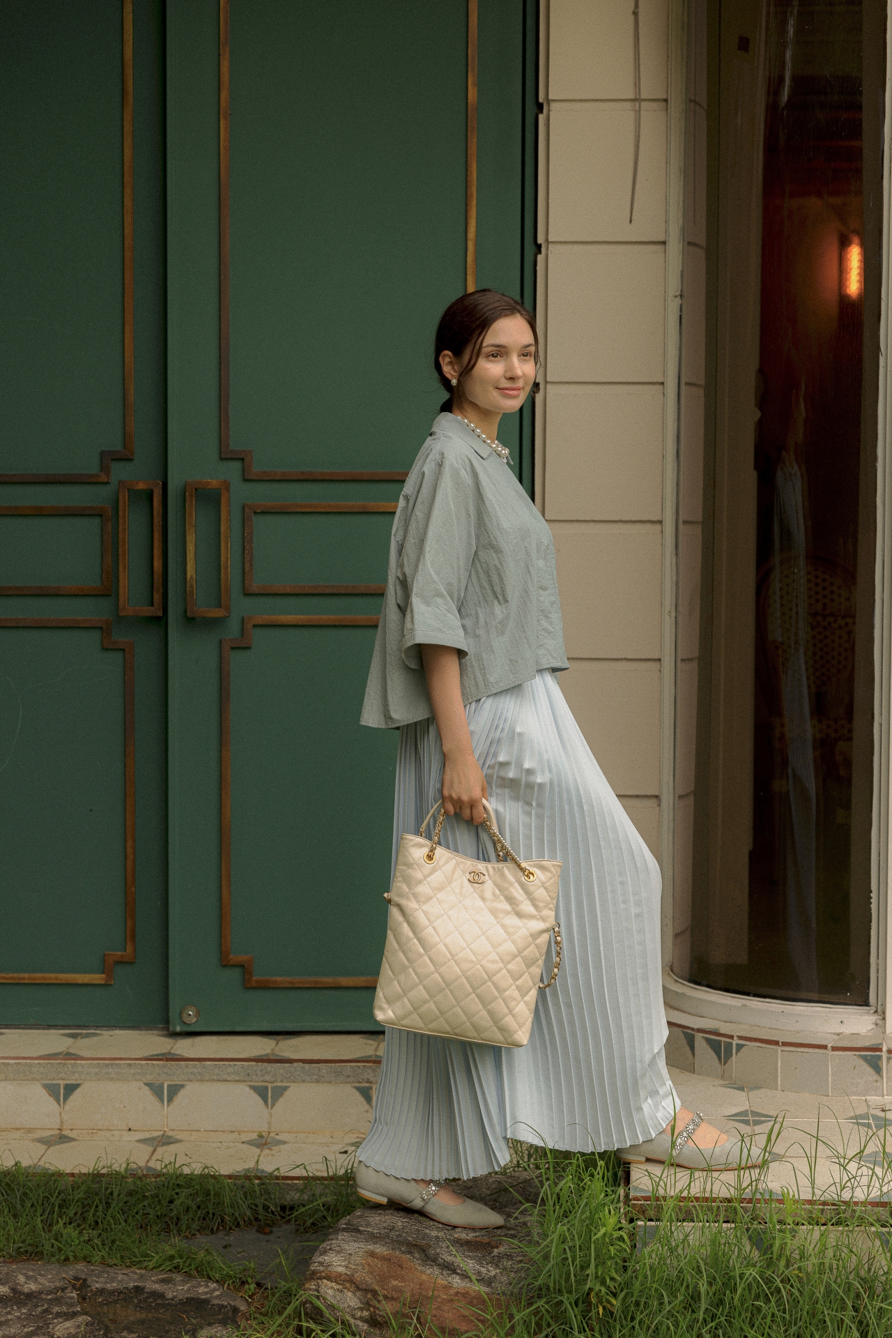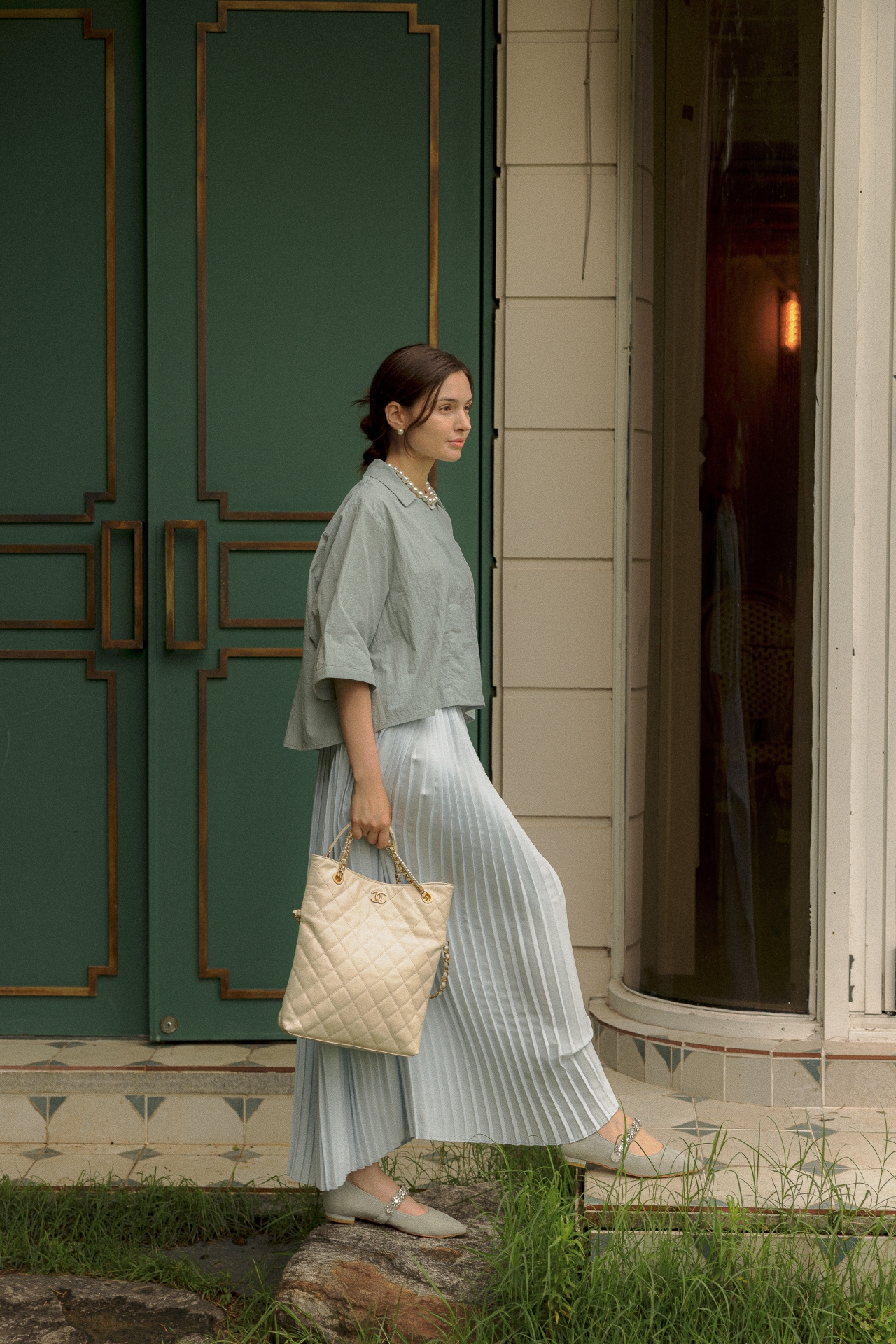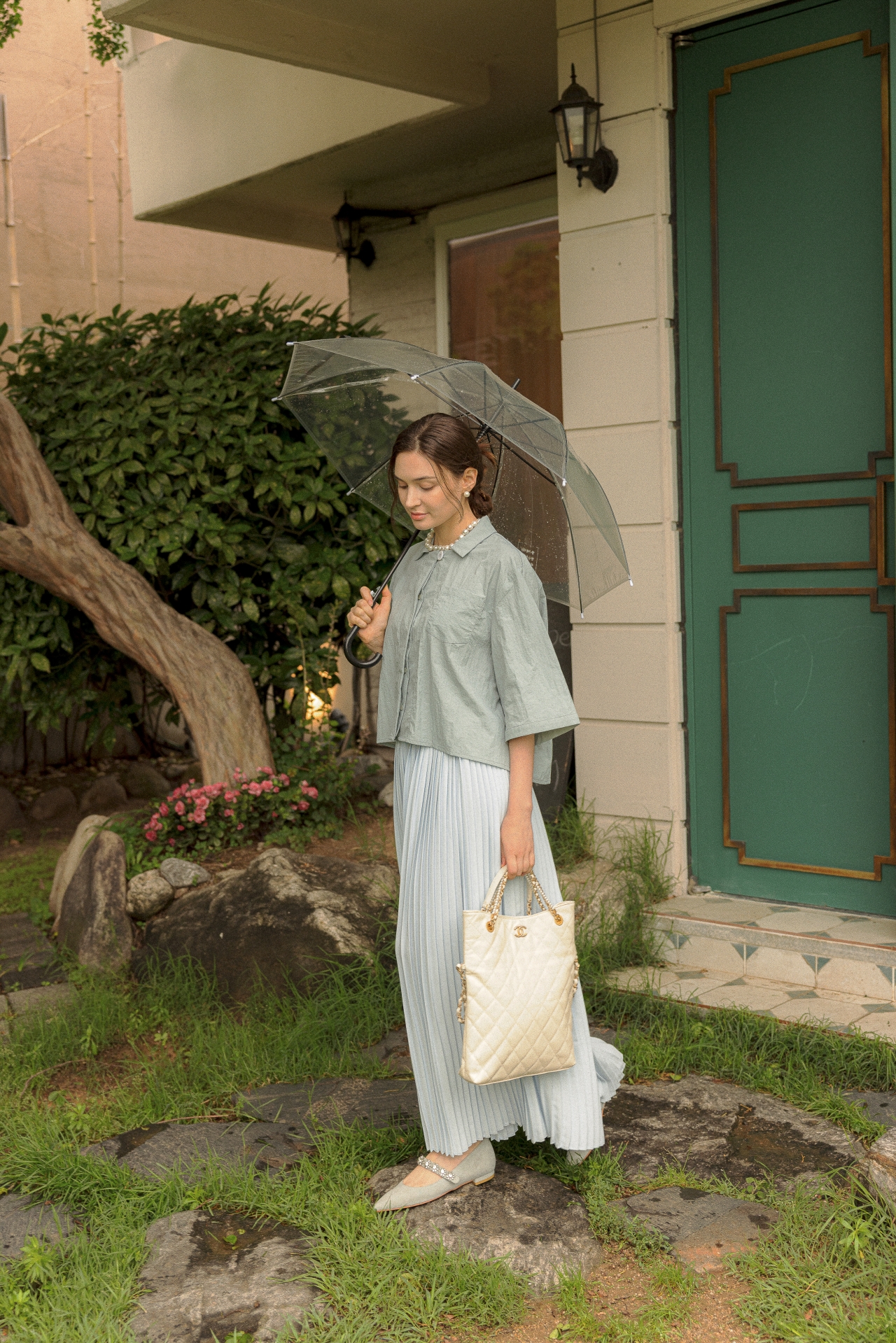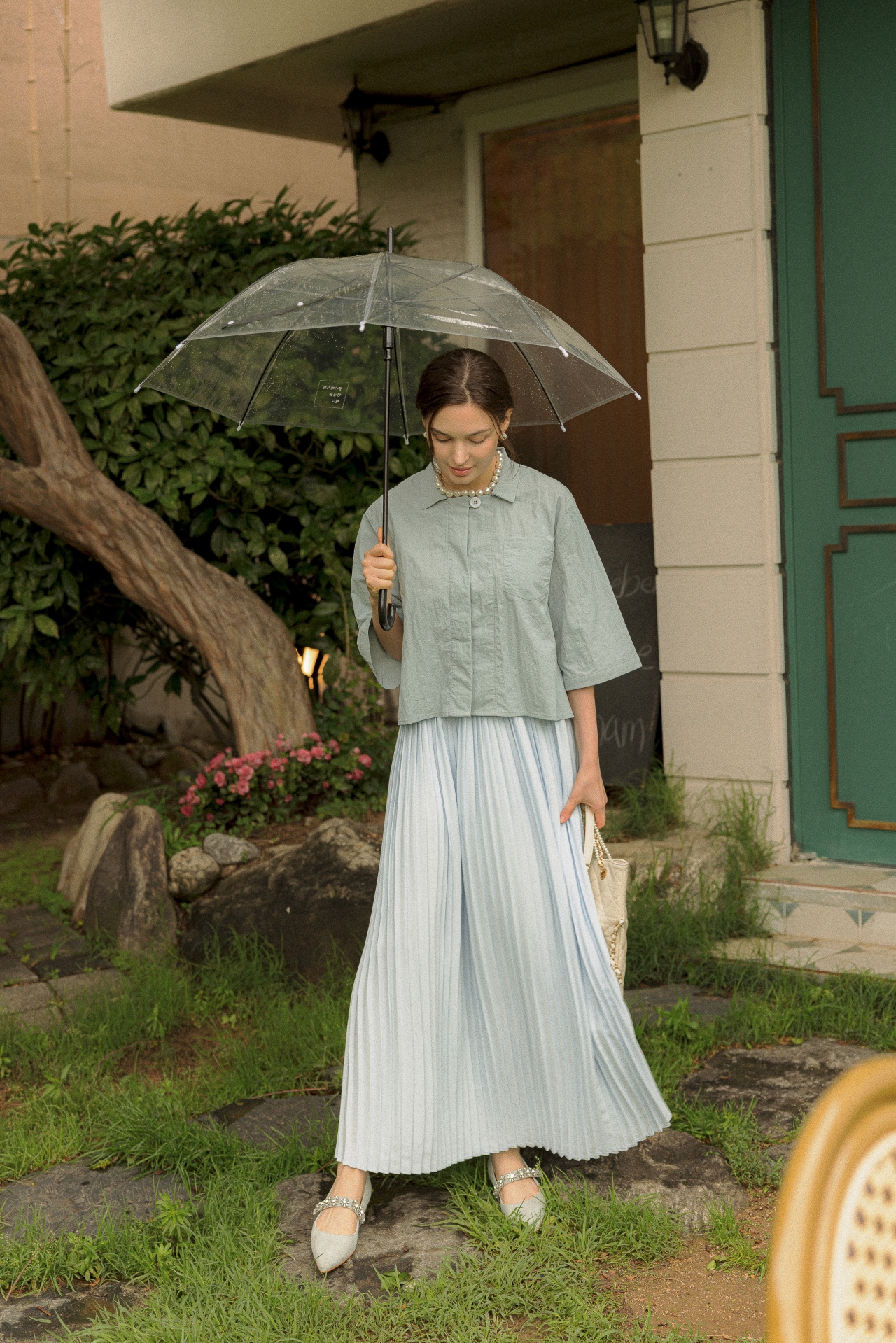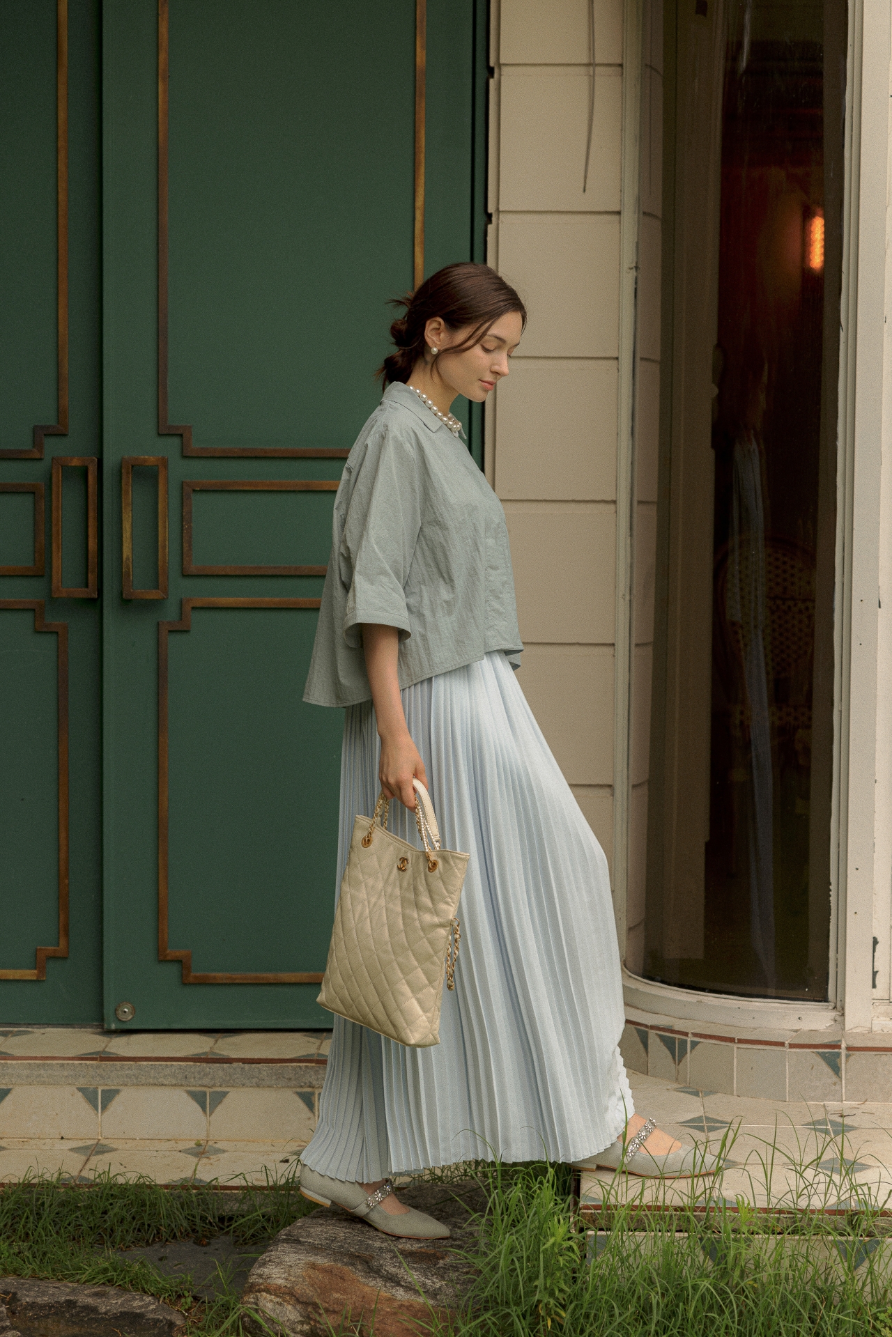 라라트리가 선보이는 보일 코튼 크롭 셔츠를 눈여겨보세요. 바스락 거리는 코튼 소재를 바탕으로 트라이앵글 패널을 구성하고 가슴에 패치 포켓을 더해 완성했습니다. 크롭한 기장감으로 하이웨이스트 스타일의 하의와 매치할 때 턱인하지 않아도 단정한 느낌을 연출할 수 있으며, 적당히 여유감있으면서 바디를 편안하게 커버해주어 몸의 군살이나 약점을 보완해주는 효과가 있습니다. 동일 색상의 크리스털 맥시 스커트를 매치해 모던하면서 여성스러운 룩을 연출해보세요.