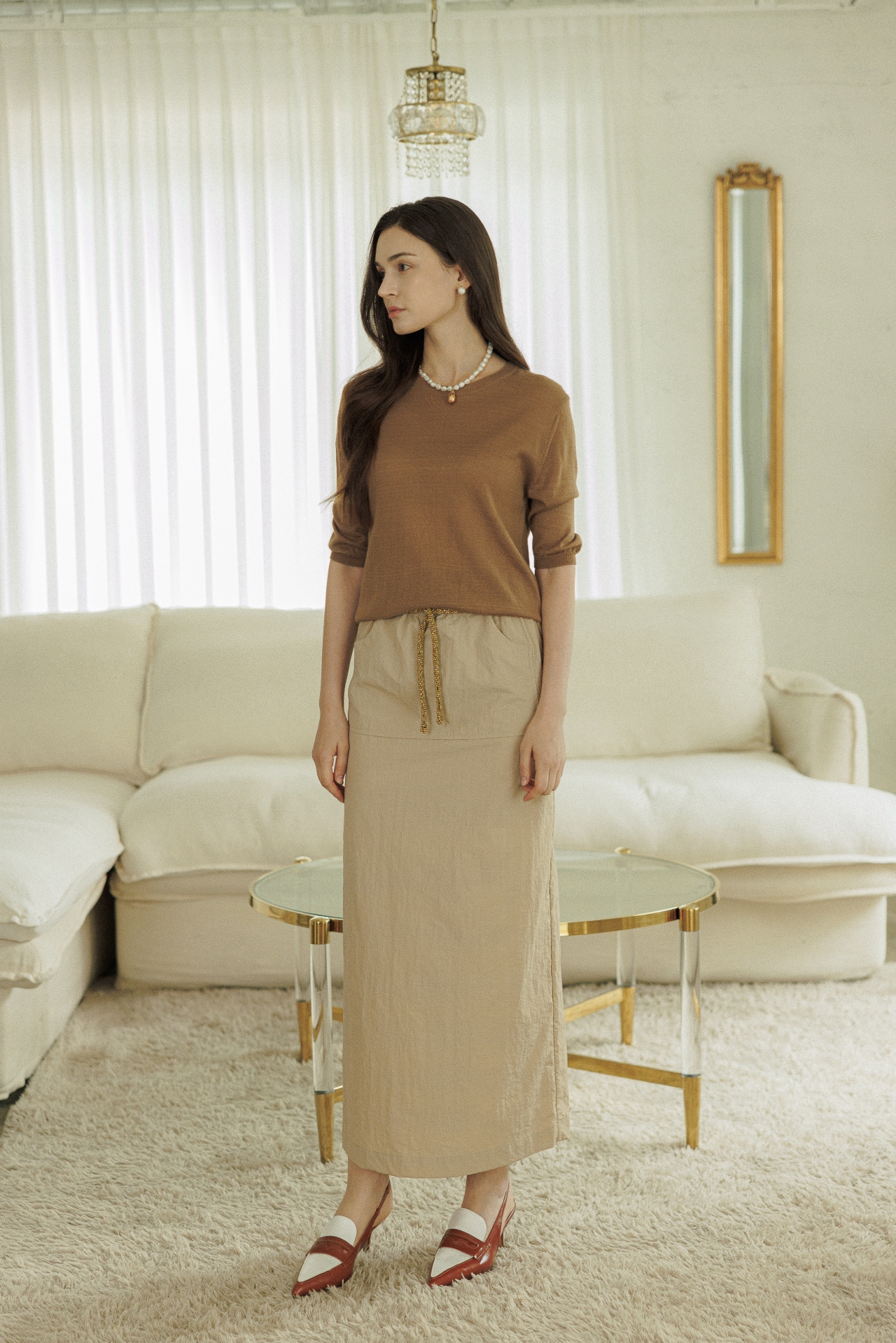 웨이스트의 매력적인 크리스털 장식이 돋보이는 라라트리의 맥시 스커트를 만나보세요. 발목에서 살짝 위까지 내려오는 길이감으로 모던한 여성스러움이 묻어나며, 웨이스트의 가느다란 크리스털 장식이 포인트로 탑을 턱인해서 연출하기에도 좋습니다. 동일 색상의 보일 코튼 크롭 셔츠를 매치해 모던하면서 여성스러운 룩을 연출해보세요.