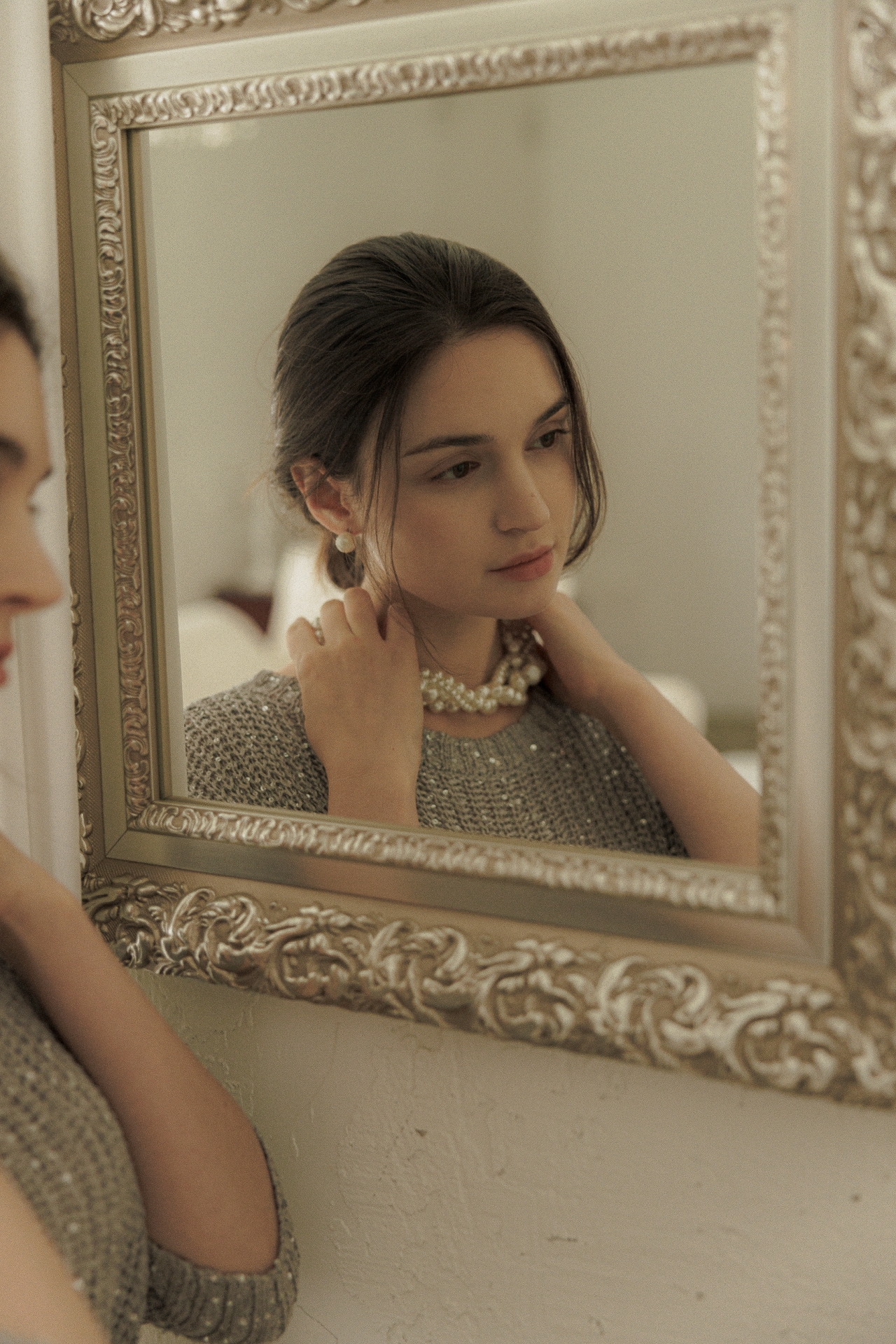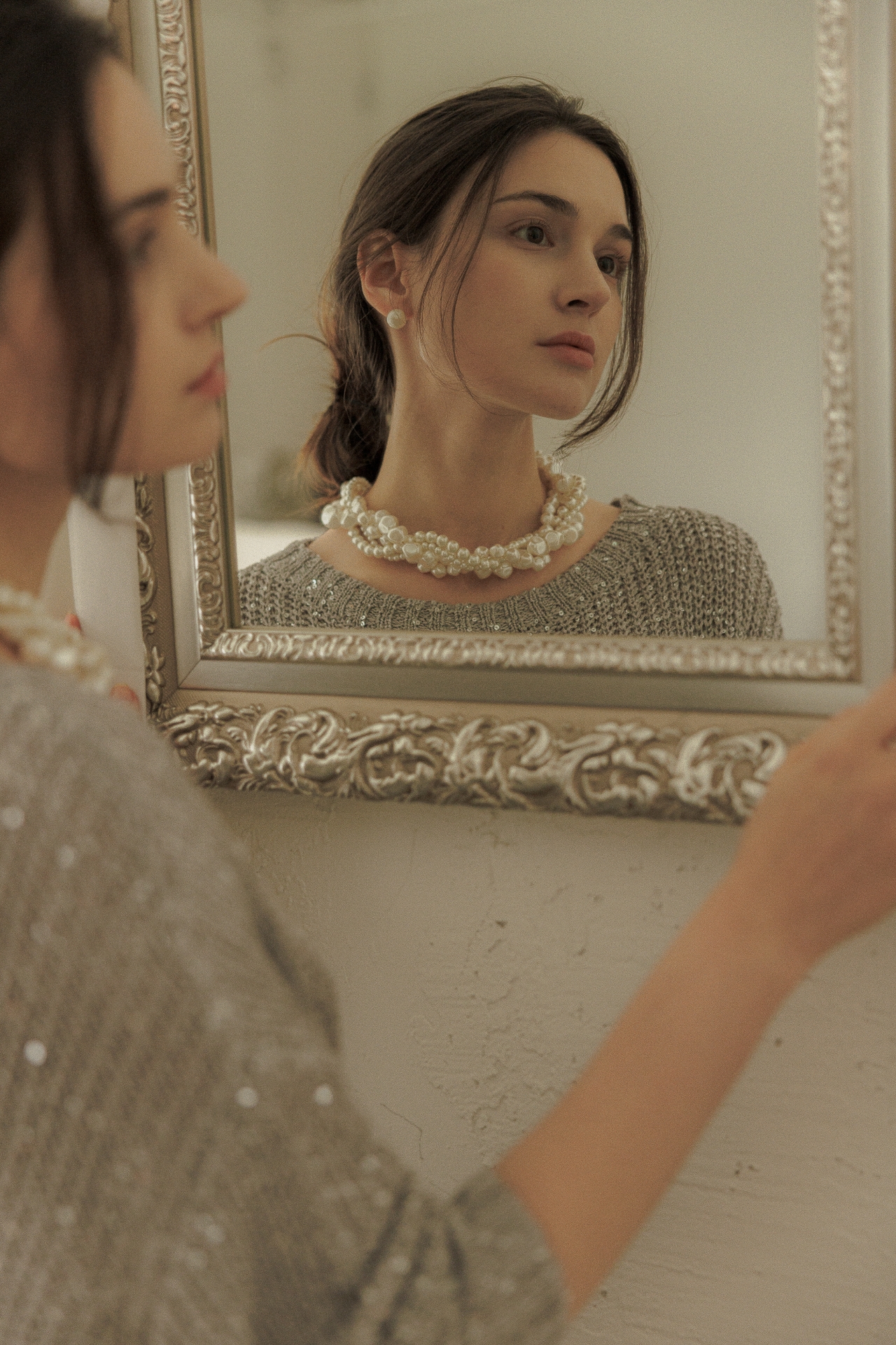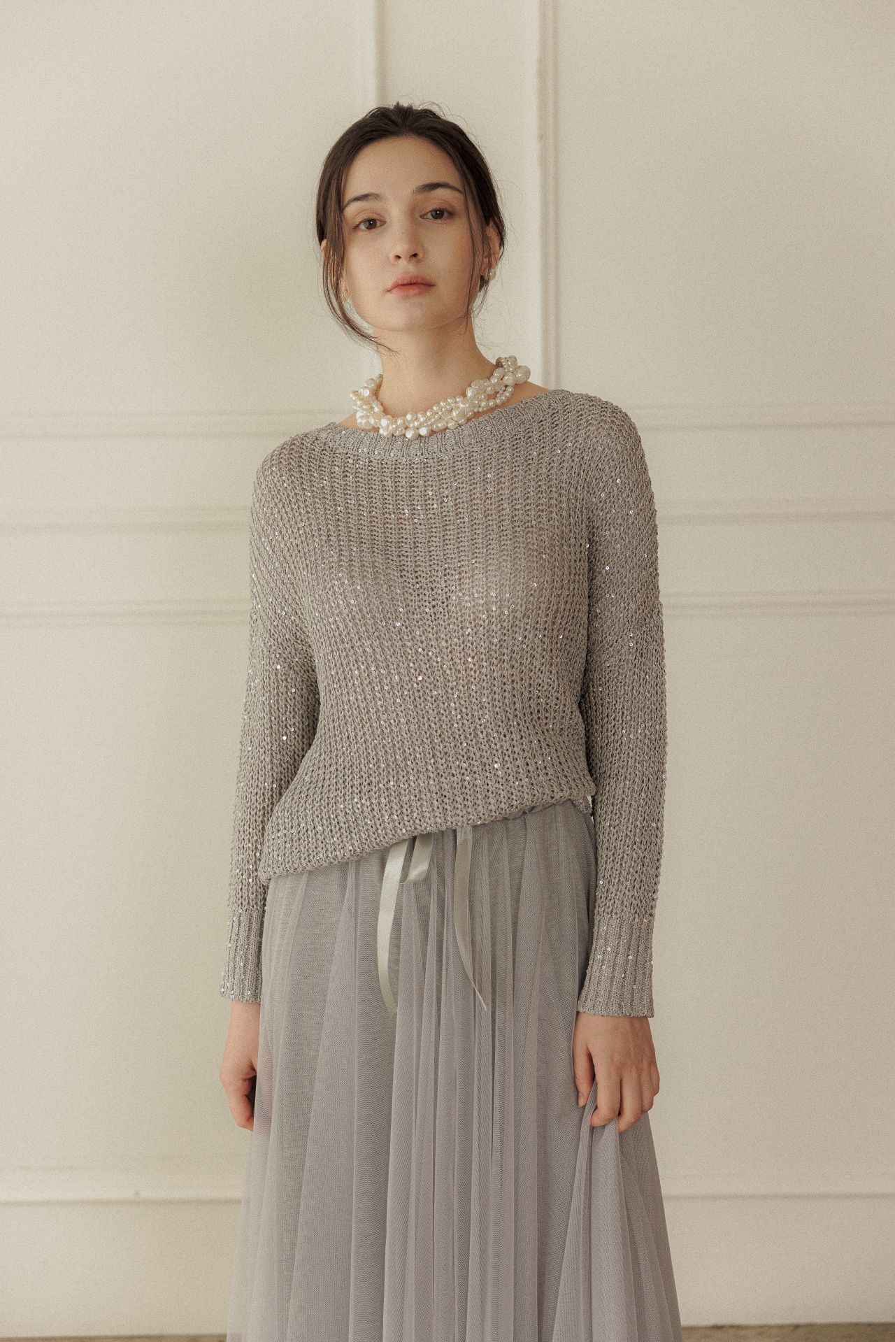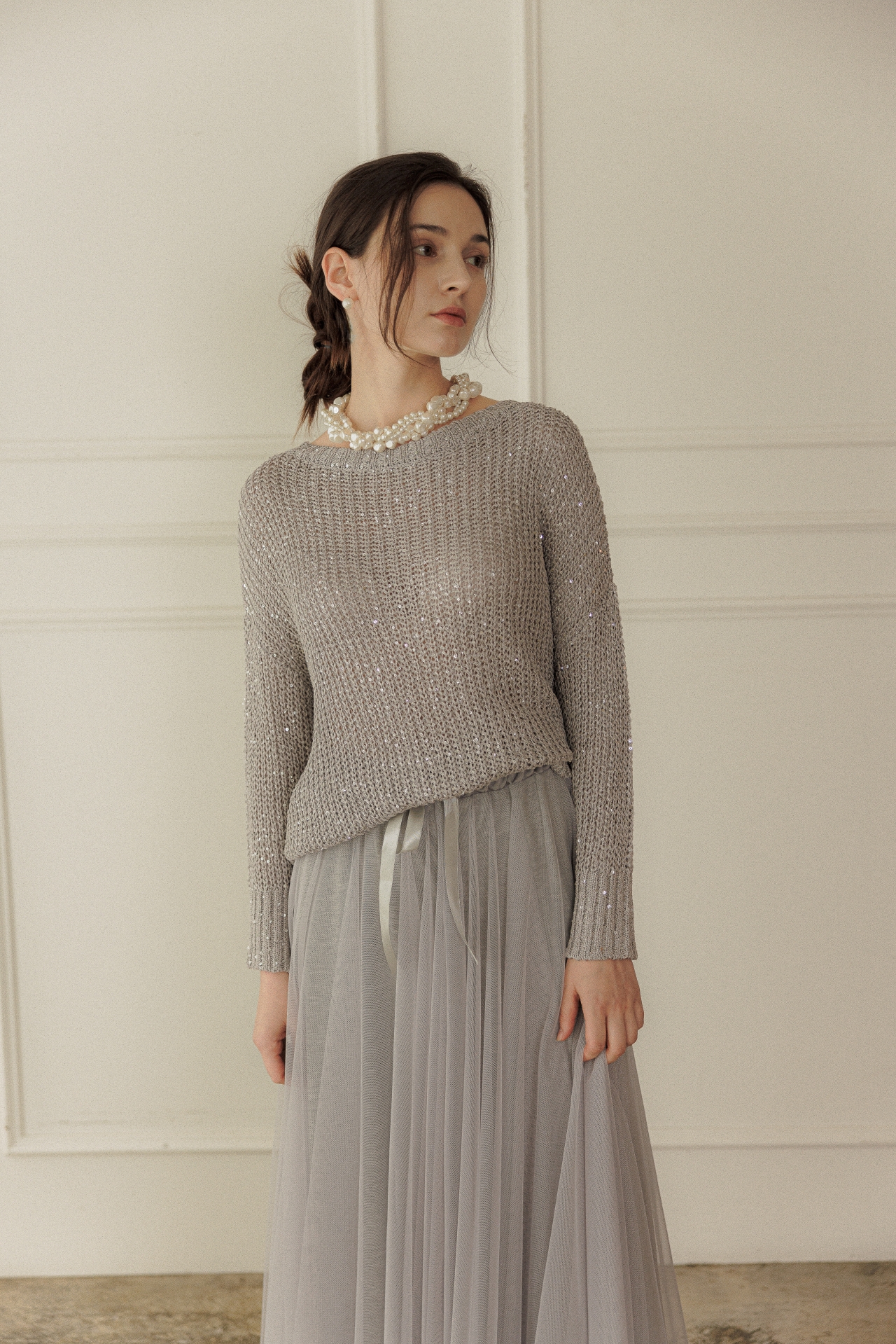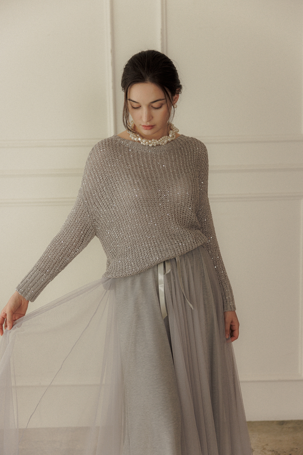 튤 소재를 주름 잡아 층이 진 실루엣을 이루었으며, 비스코사 안감을 덧대 마감했습니다. 웨이스트 밴드의 리본 트리밍이 포인트로 전체적으로 볼륨감 있게 주름을 잡은 튤 스커트이며, 부드러운 시스루 튤을 섬세하게 주름 잡아 심플한 A라인 실루엣을 그려냈습니다.