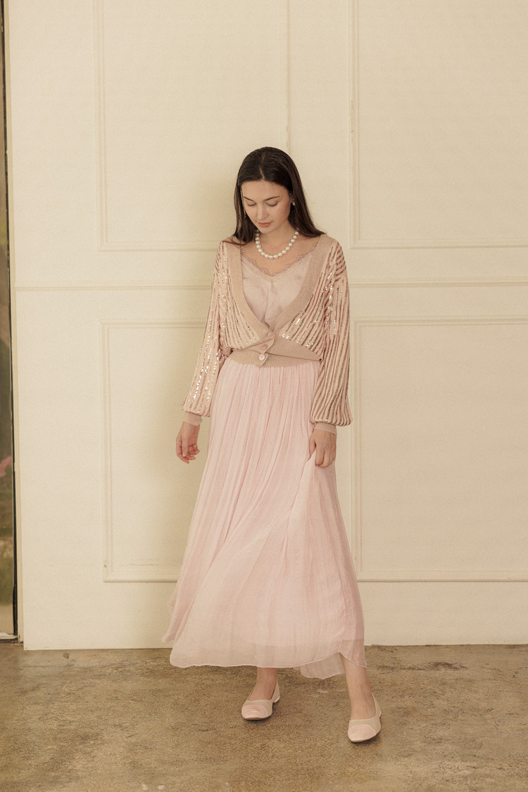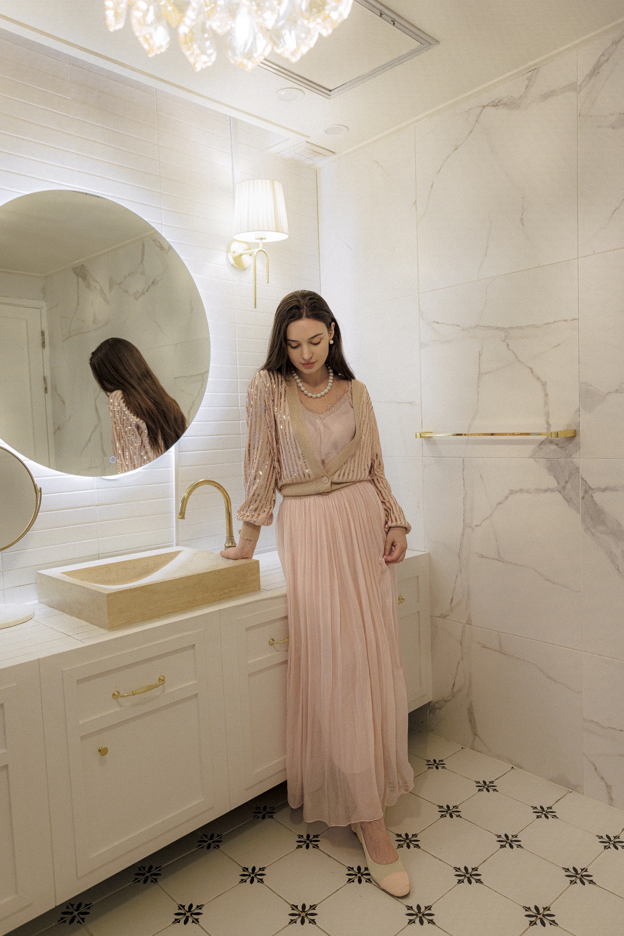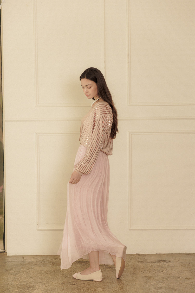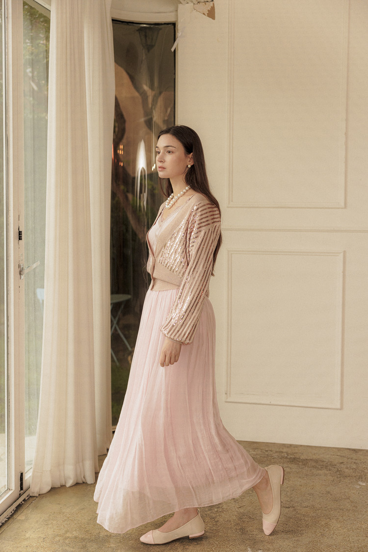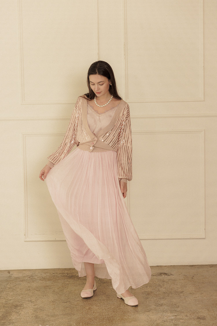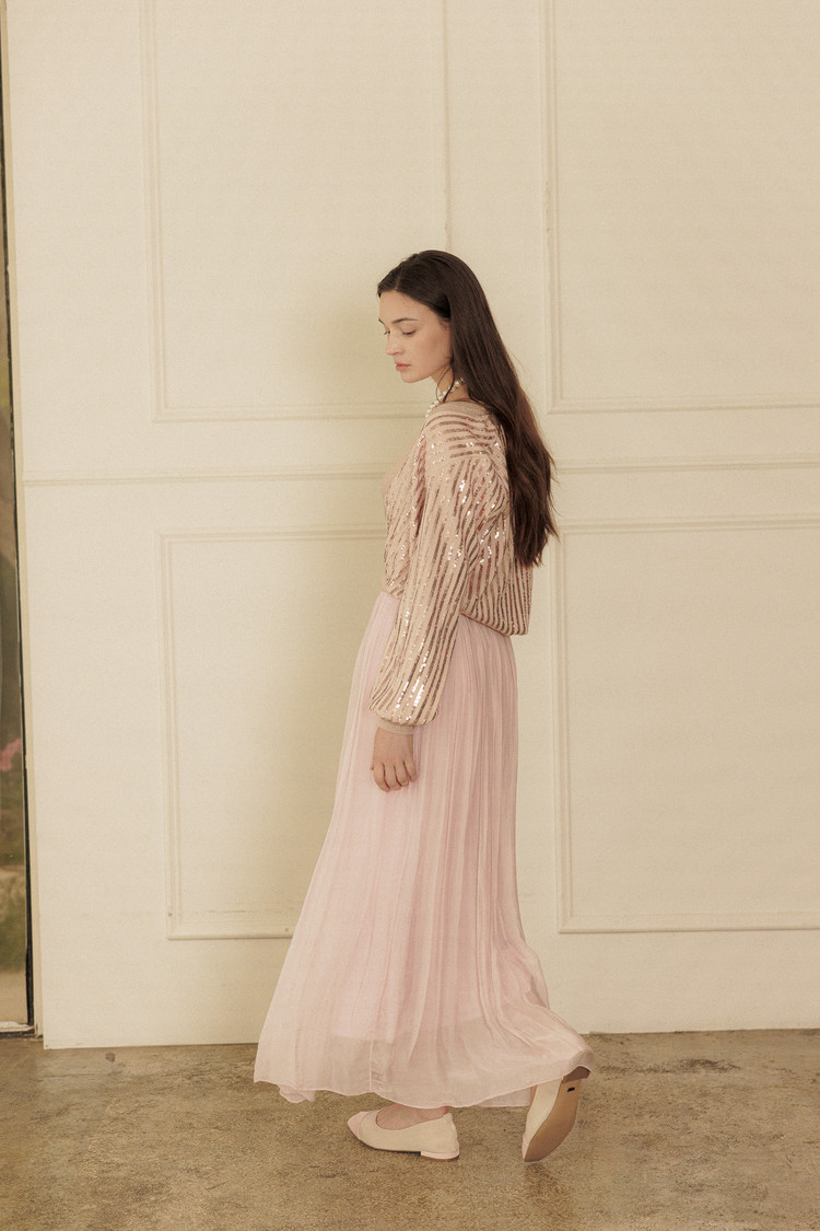 흐르는 듯한 실루엣의 실크 스커트를 만나보세요. 볼륨감 있는 텍스쳐를 구현하기 위하기 위해 정교한 솜씨를 바탕으로 그려낸 플리츠 디테일이 돋보입니다. 이탈리아에서 실크 소재로 제작했으며, 신축성 있는 하이라이즈 웨이스트 아래로 흐르는 듯 떨어지는 실루엣을 완성하였습니다. 자연스러운 A라인 실루엣을 그려내고, 고급스러운 광택이 흐르는 실크 텍스쳐를 덧입혀 한층 더 우아한 실루엣을 연출합니다.
