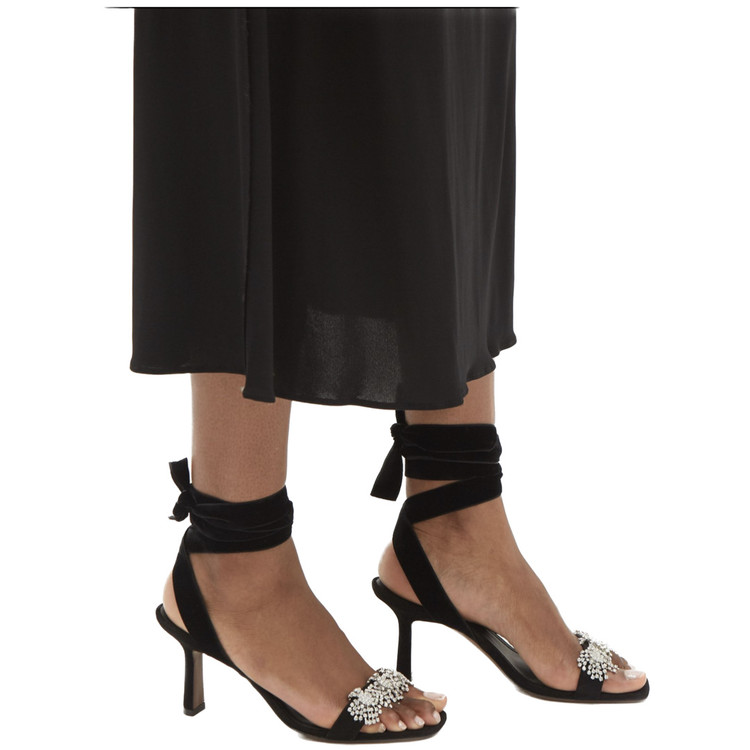 발등을 감싸는 스트랩에 크리스탈을 장식해 반짝임을 더했습니다.