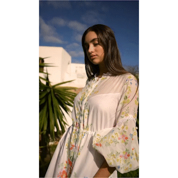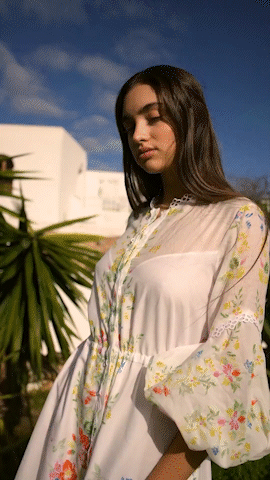 잔잔한 플로럴 패턴이 눈길을 끄는 카로 루이즈의 화이트 맥시 드레스를 만나보세요.