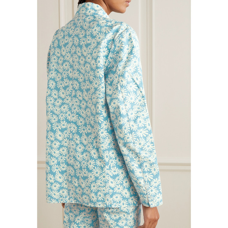 브랜드의 '블루 데이지'모티브가 프린트된 튼튼한 코튼 캔버스로 재단되었으며,