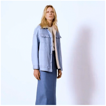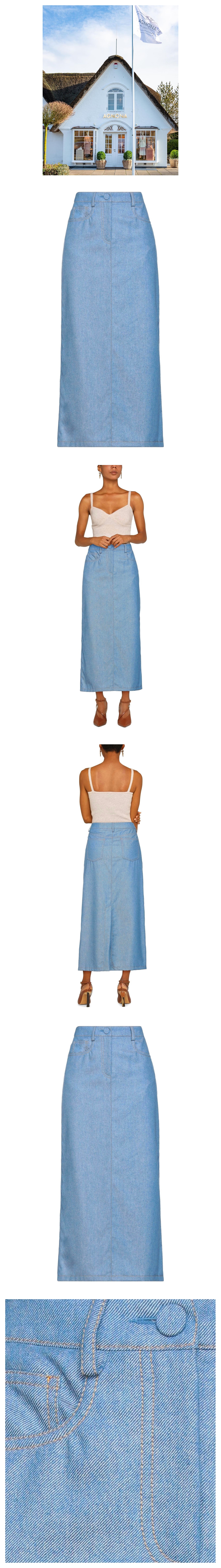 아뇨나의 수준 높은 장인 기술이 고스란히 드러나는 블루 캐시미어 데님 스커트를 눈여겨보세요.