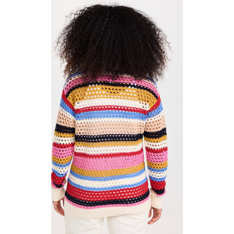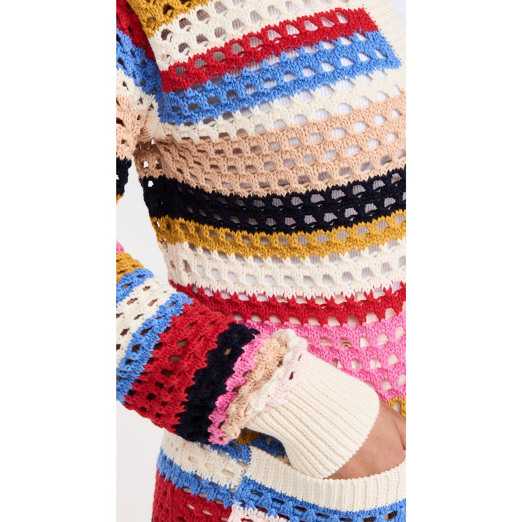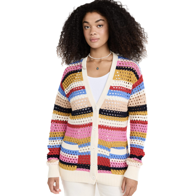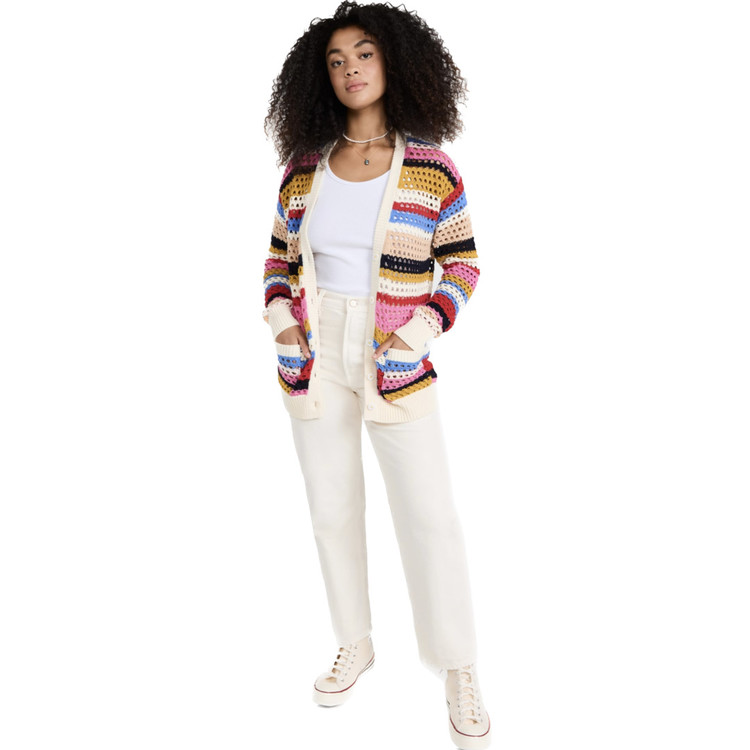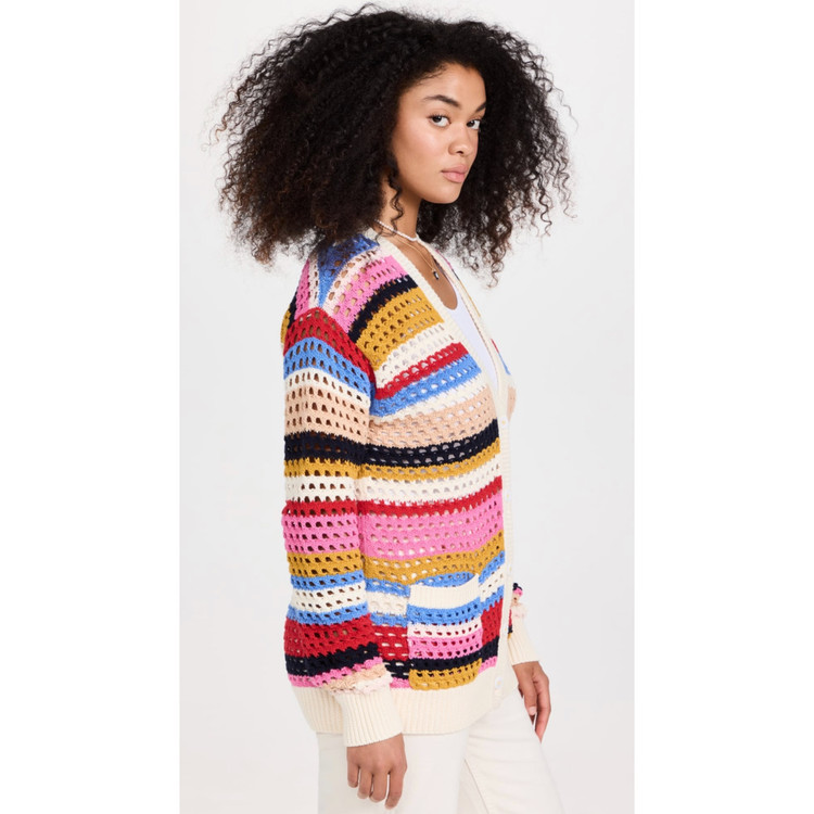 스트라이프 크로셰 가디건은 코튼 캐시미어 소재를 코바늘로 짠 제품입니다.