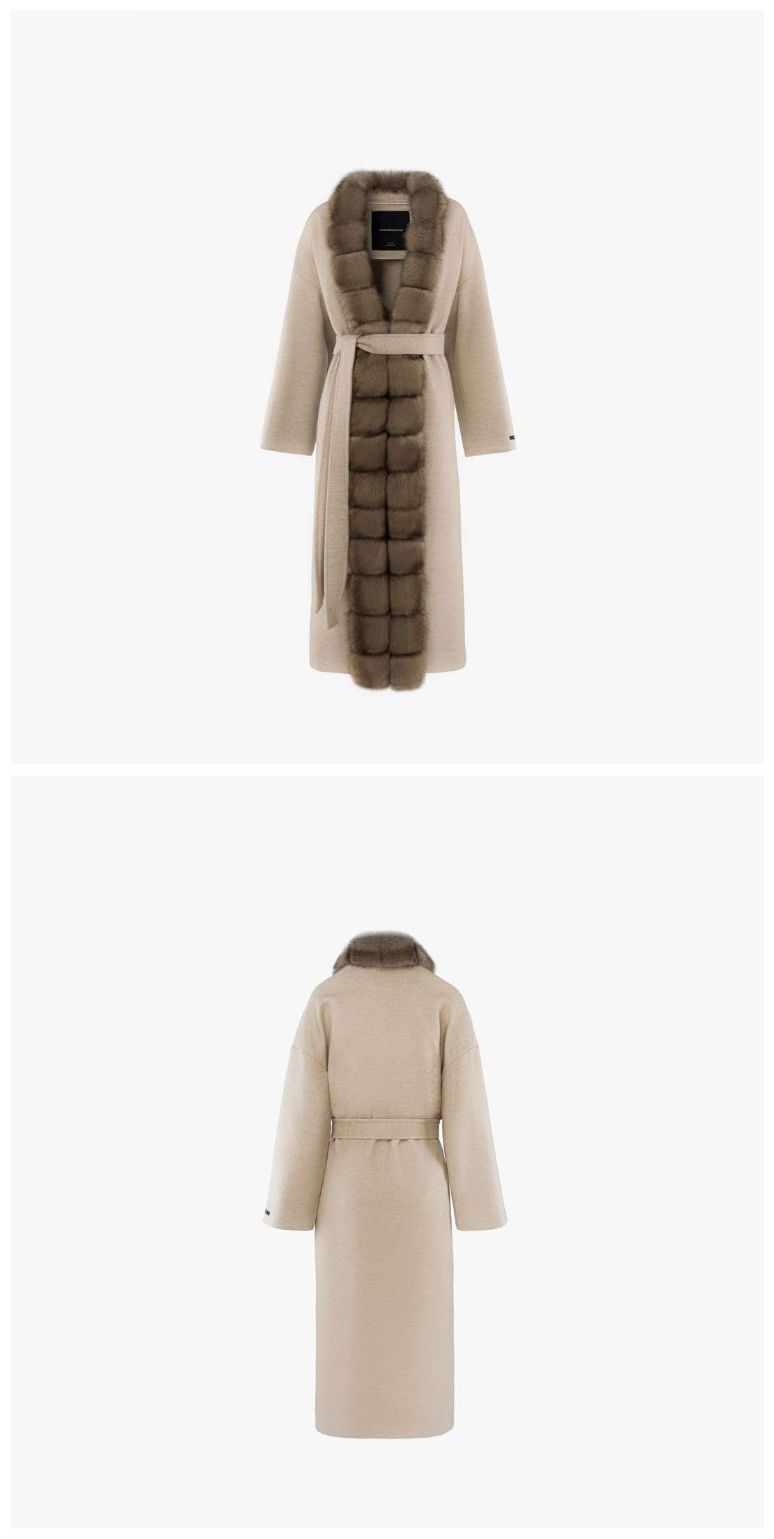 - Long coat / Barguzinski Russian sable border / Belt at the waist / Wide fit