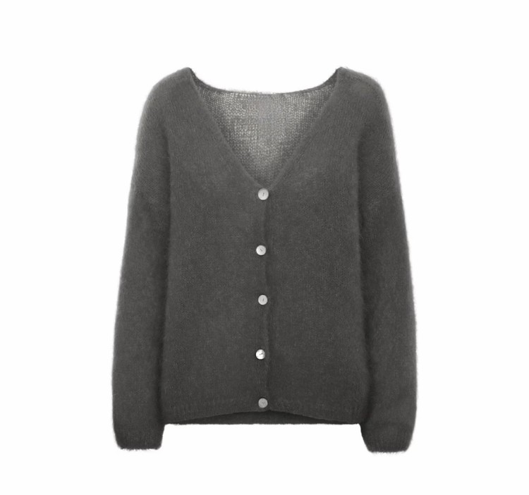 이탈리아산 모헤어 니트웨어 소재로 제작된 가디건은 앞이나 뒤에 버튼이 있는 여러 가지 방법으로 착용할 수 있으며,