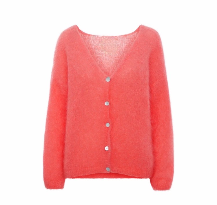 이탈리아산 모헤어 니트웨어 소재로 제작된 가디건은 앞이나 뒤에 버튼이 있는 여러 가지 방법으로 착용할 수 있으며,