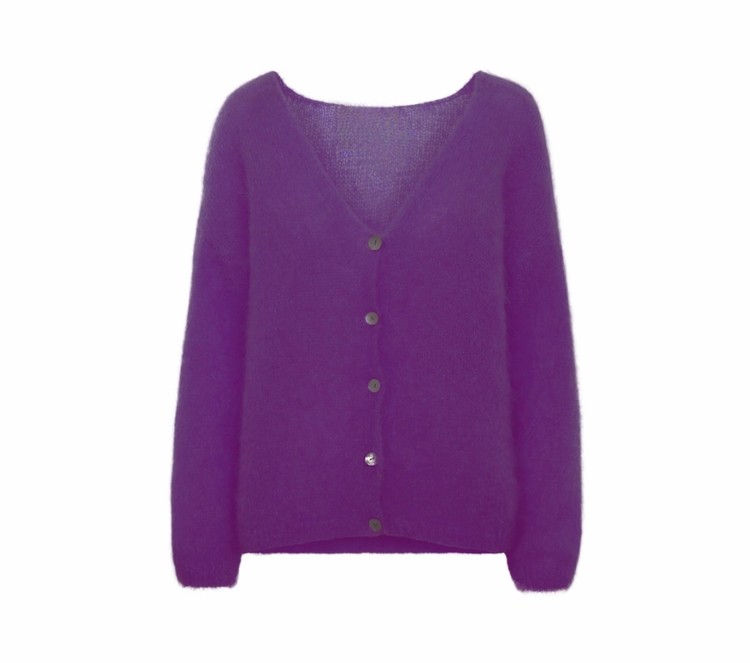 이탈리아산 모헤어 니트웨어 소재로 제작된 가디건은 앞이나 뒤에 버튼이 있는 여러 가지 방법으로 착용할 수 있으며,